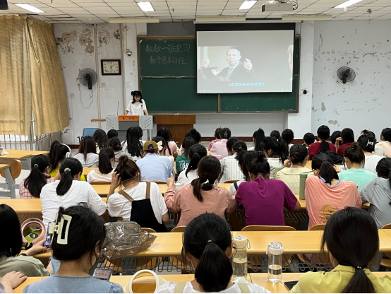 2023年5月15日,成继红老师在A05-0101教室举行了见习动员会。动员会上,成老师提出了本次见习的目的与要求,部署了此次见习要开展的活动,并对员工进行了安全教育。随后,2022级小学数学教育专业一班全体同学在班长和学委的带领下欣赏电影《放牛班的春天》,从电影中感受教育的魅力以及教育的重要性。