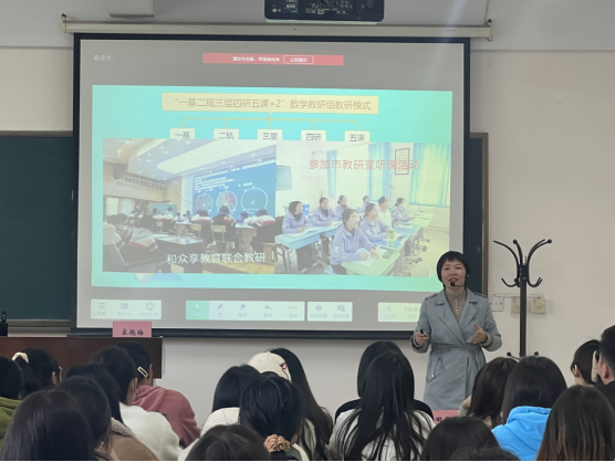 图2 宋艳梅老师在给参加教育见习的同学们做讲座