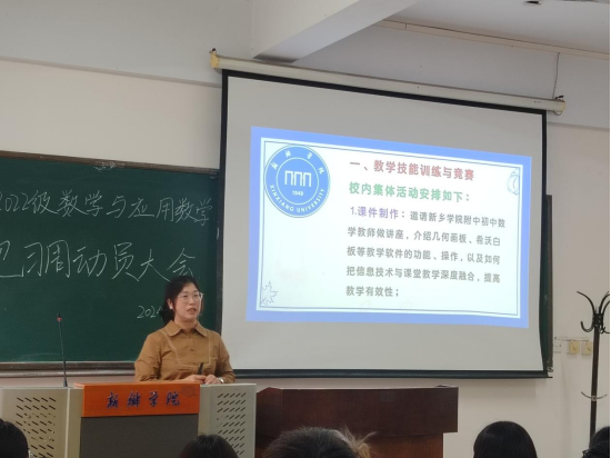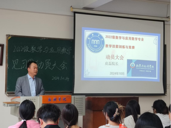 2024年10月14日下午3点,2022级数学与应用数学全体员工和公司领导、老师齐聚于A03-209教室,共同迎来了“2022级数学与应用数学专业教学技能训练与竞赛动员大会”的开幕。会议开始,副经理皮磊老师深刻阐述了此次见习的非凡目的与深远意义——“如何成为一名优秀的数学教师”。皮老师的话,让同学们深切领悟到,成为一名卓越的数学教师,仅凭满腹经纶远远不够,还需在实践中磨砺,在实战中升华。此次见习,正是22级应数全体员工踏入真实教学殿堂的宝贵契机,可以让他们得以近距离观摩真正的数学教学,感受其魅力与真谛。随后,张玲瑞老师以温婉而坚定的语调,为为员工们讲述了精彩纷呈的活动内容,使22级应数全体员工对整个见习过程有了清晰而全面的认知。张老师更以自身丰富的经历为引,激励员工们珍惜机会,勇于挑战,不断提升自我,她的每一句话都充满了力量与鼓舞。最后,班干们以严谨的态度和细致入微的讲解,为全体员工明确了见习的具体要求与任务。通过本次动员大会,让员工们对接下来两周的见习活动有了更明确的目标与努力方向,为以后的教学工作奠定了基础。