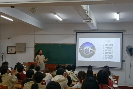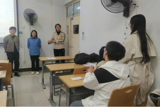 报告结束后,同学们积极踊跃地进行提问,两位老师结合自己的成长经历和工作经验,就同学们关注的“没有具体的生活例子时我们该怎么激发员工兴趣?”“在进行教材分析时,对铺垫的知识如何进行串联?”“关于学习说课有什么途径?”等方面的问题给出了有针对性的建议。同学们从老师们的分享内容中学到了许多宝贵经验和方法,为今后进一步提升自身的教学理论水平和教学实践能力明确了努力方向。