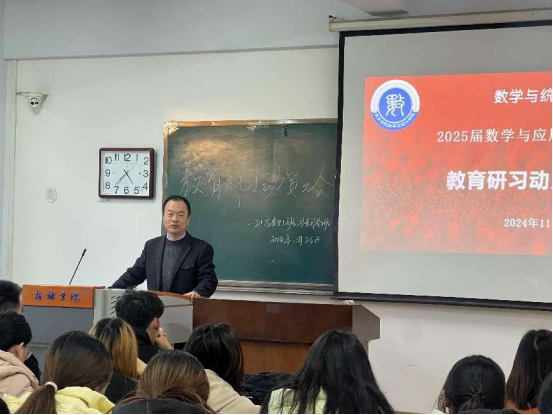 11月27日下午,beats365在A03-209教室举行了2025届数学与应用数学专业教育研习动员会。此次动员会旨在为80名即将进行教育研习的师范生提供指导和激励,确保他们在这个重要的学习阶段中取得丰富的经验、收获丰硕成果。beats365副经理皮磊、数学与应用数学教研室主任张玲瑞参加了动员大会。