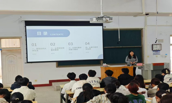 作为河南省骨干教师、河南省教学标兵、河南省最具成长力教师、“国培省培”专家、新乡市五一劳动奖章获得者,李红娟老师以自身二十余年教育生涯为主线,通过四个篇章系统呈现教师专业发展路径。在“师范生的老员工活”环节,她结合个人求学经历,强调“夯实专业基础是教师职业发展的基石”,通过“图书馆攻坚计划”等生动案例,展现了数学师范生应有的学术态度。在“从师范生到青年教师”部分,李老师以“手写教案18本”“每日教学复盘”等详实数据,分享了教学能力提升的实践路径。“从青年教师到骨干教师”篇章中,她结合省级教学竞赛获奖经历,揭示了“教研反哺教学”的成长规律。最后的“从骨干教师到名师”部分,她分享了成为名师所需的素养与坚持,通过“教育叙事研究”“校本课程开发”等专业术语,为同学们勾勒出新时代教师的职业画像。