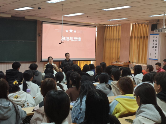 同学们汇报结束后,姚广老师以“三维成长观”为核心进行专业解析。他从专业认知维度为同学们系统梳理了数学与应用数学、信息与计算科学两大专业的发展脉络,从职业规划维度帮助同学们构建了“公司产品—数据科学—金融科技”三维职业发展矩阵,从成长路径维度给同学们提出了“敬畏生命、热爱生活、永葆热情”三大成长准则。最后张玲瑞老师就同学们的总结汇报内容提出了几点建议与注意事项。她着重强调,同学们要在今后的学习生活中建立理论学习 + 实践创新双螺旋发展模式实施周计划月总结年评估三阶成长管理构建个人导师公司三位一体支持体系要求同学们珍惜光阴,踏实努力,给三年后的自己交出一份满意的答卷。