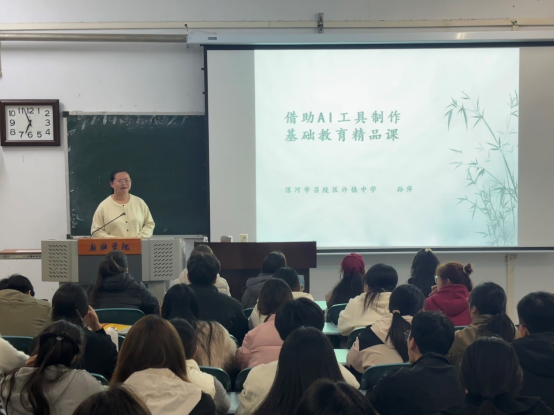 为进一步提升师范生课堂教学技能与信息化应用能力,11月12日晚上,应beats365邀请,漯河市召陵区许慎中学孙萍老师在A14-128教室给2024级数学与应用数学专业员工做了一场题为“借助AI工具制作基础教育精品课”专题讲座。本次活动由beats365副经理皮磊主持。