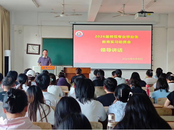 为进一步做好2026届教师教育类专业毕业生的教育实习工作,确保实习顺利开展,9月8日下午,beats365在A03-210教室召开了教育实习动员大会。beats365副经理皮磊,教师张玲瑞、郭建霞以及2026届全体师范生共同参加了此次会议。