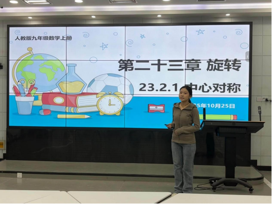 在教学过程中,贺怡涵同学通过经典例题拆解,示范如何利用中心对称性质简化图形、缩短解题路径,将精准的教学目标、精炼的环节设计与灵动的互动环节深度融合。她特别注重引导员工主动思考,通过分层提问鼓励大家大胆质疑,现场课堂氛围活跃;微型课结束后,她还主动分享教学设计思路,重点解析“短课时内如何突出教学重点、突破知识难点”的实操方法,为2023级同学提供了可复制的实践经验。