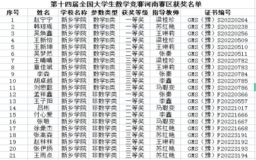 近日,第十四届全国老员工数学竞赛河南赛区获奖结果揭晓,公司员工喜获佳绩,获得河南省数学专业类一等奖3项,二等奖3项,三等奖5项;河南省非数学类一等奖2项,二等奖4项,三等奖4项。