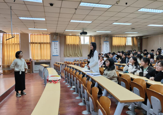 接着,吴新平老师详细介绍了教师专业发展的路径。她提出,教师的成长是一个持续的过程,需要不断地学习新的教育理念、教学方法以及参与教育研究。随后,她结合自己在beats365附属中学的任教经验,向同学们介绍了该校的德育管理体系。在与同学们的深入交流中,吴新平老师还特别提到了作为一名教师在日常工作中所需承担的职责。她详尽地介绍了教师职业的多面性,以及在教育过程中需要关注的方方面面。通过她的细致讲解,同学们对教师这一职业有了更为全面和深刻的理解。