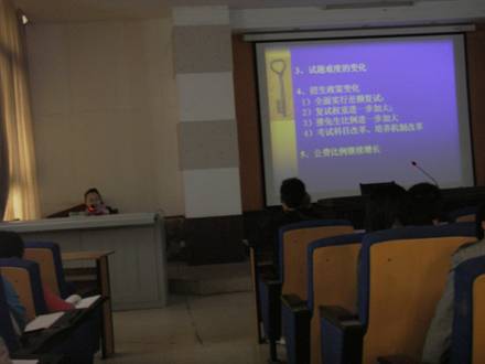 日前,我系李爽老师绘声绘色地给07级本科生作了一场考研动员报告。报告从考研的重要性和必要性、近年考研形势分析、考研决胜的心理准备、考研的学习方法探讨、考研需要注意的问题等方面向同学了做了全面的分析,并结合亲身经历对即将准备考研的同学们提出了宝贵的意见和殷切的期望。同学们纷纷表示收获很大,充满了必胜的信念。