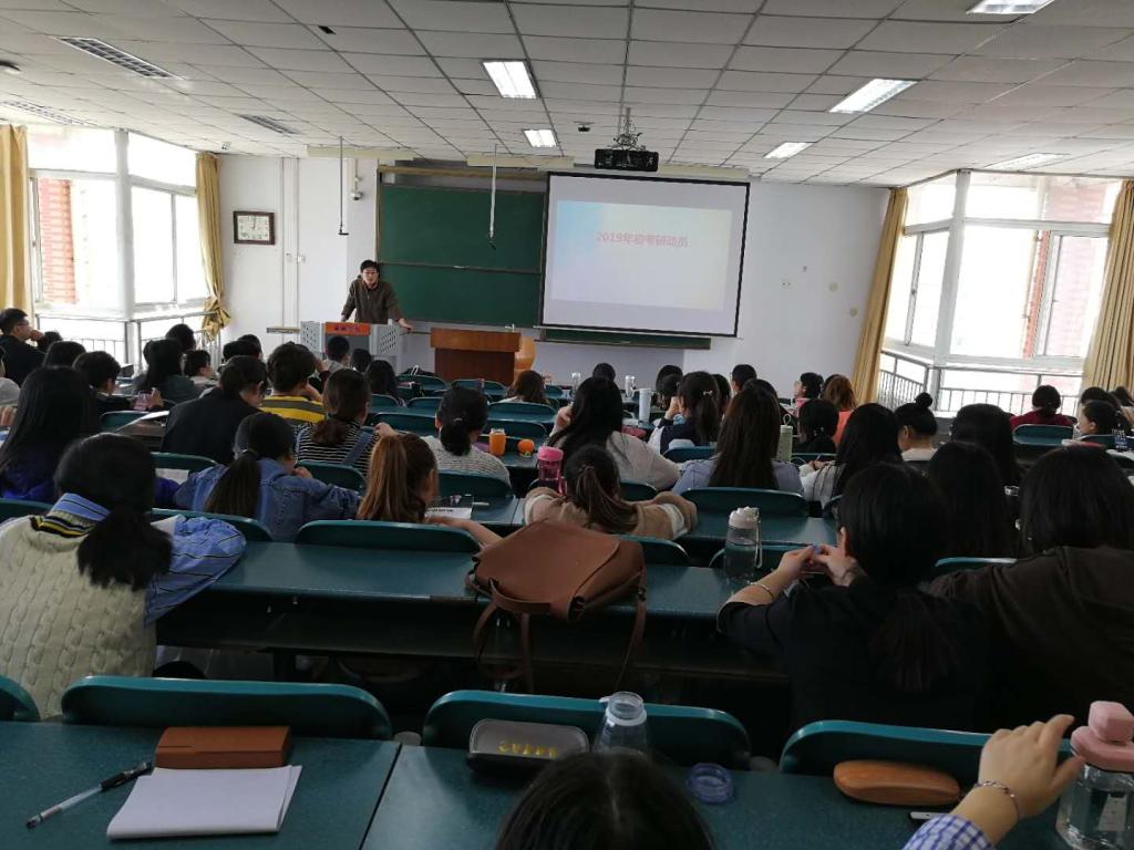 2019年4月16日下午2点30分,数学与信息科学公司在A05-505阶梯教室召开了2016级员工考研动员及指导大会,2016级数学与应用数学专业和信息与计算科学专业的员工及部分2017级有考研意向的员工参加了此次大会。