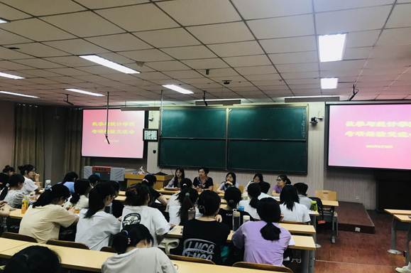 紧接着,由张秦副经理向同学们简单介绍了本次座谈会邀请来的2021届考研成功的数学与应用数学专业的高晓菲同学、信息与计算科学专业的毛梦涵同学和应用统计学专业刘梦阳同学的基本情况,然后三位同学进行了考研经验分享。