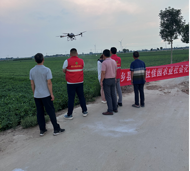 针对花生生长过程中频发的病虫害及各类生长问题,刘庆老师多次与新乡县供销社沟通协调。2025年7月29日,他与佳园农业总经理洪惠萍、新乡县供销社相关领导一同前往新乡县冷庄村,现场指导花生病虫害防治及后期生长管理工作,并协助新乡县供销社利用无人机为冷庄村花生基地精准喷洒农药与营养液。