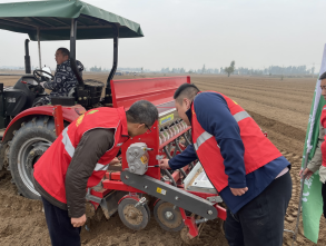 紧随花生生产服务之后,11月初,刘庆教授又投身于小麦播种技术指导工作。受同期降雨量偏大影响,新乡县土壤湿度显著高于往年,给小麦播种带来诸多挑战。凭借扎实的数据分析与应用统计专业功底,刘庆教授实地检测土壤墒情并进行科学分析,同时结合农业专家意见,针对播种深度控制、种植密度调控、水肥管理优化等关键技术要点,为佳园农业服务有限公司服务区内的种植户提供精准指导。