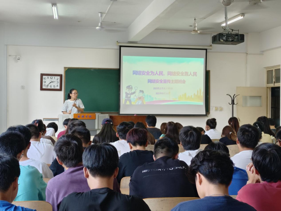 为深入学习党的二十大精神,贯彻落实习近平总书记关于教育强国、网络强国的重要论述,宣传普及国家网络安全有关法律法规、政策标准和网络安全知识,提高员工的网络安全意识,2023年9月14日下午,2022级应用统计学1班在A03-209教室开展了以“网络安全为人民,网络安全靠人民”为主题的网络安全教育主题班会。此次班会由组织委员赵梦雨主持,辅导员苏红艳参加了班会。