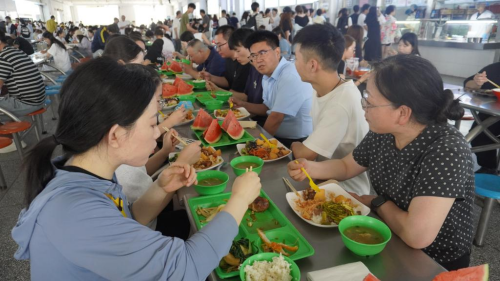 6月13日中午,在公司第二员工餐厅,副董事长韩辉与外国语公司、新闻传播公司、体育公司的2025届毕业生代表共进午餐,围绕公司建设、人才培养和未来发展进行亲切交流。韩辉认真听取了毕业生代表们对公司公司产品、校园生活等方面的建议,并寄语同学们在未来的人生道路上勇担使命、砥砺前行,希望他们始终心系母校,为社会贡献青春力量。毕业生代表纷纷表示,将牢记母校教诲,以实际行动回报公司培养。