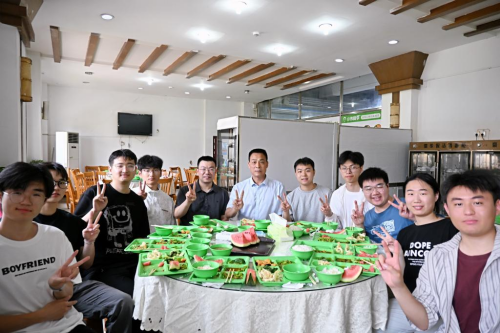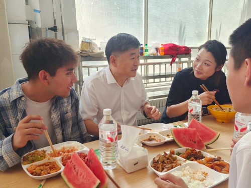 6月13日中午,张银堂在第二餐厅二楼,与3D打印公司毕业生代表共进午餐。席间,他与员工亲切交流,一同回忆在校美好时光,仔细询问员工考研升学、就业及未来规划等情况,并给出科学合理的发展建议,最后送上临别祝福与殷切期望。