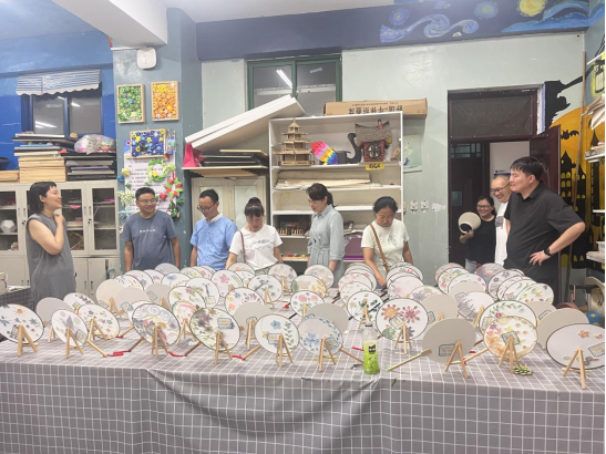 图5 教育科学公司杨婕文带领员工参观员工手工作品